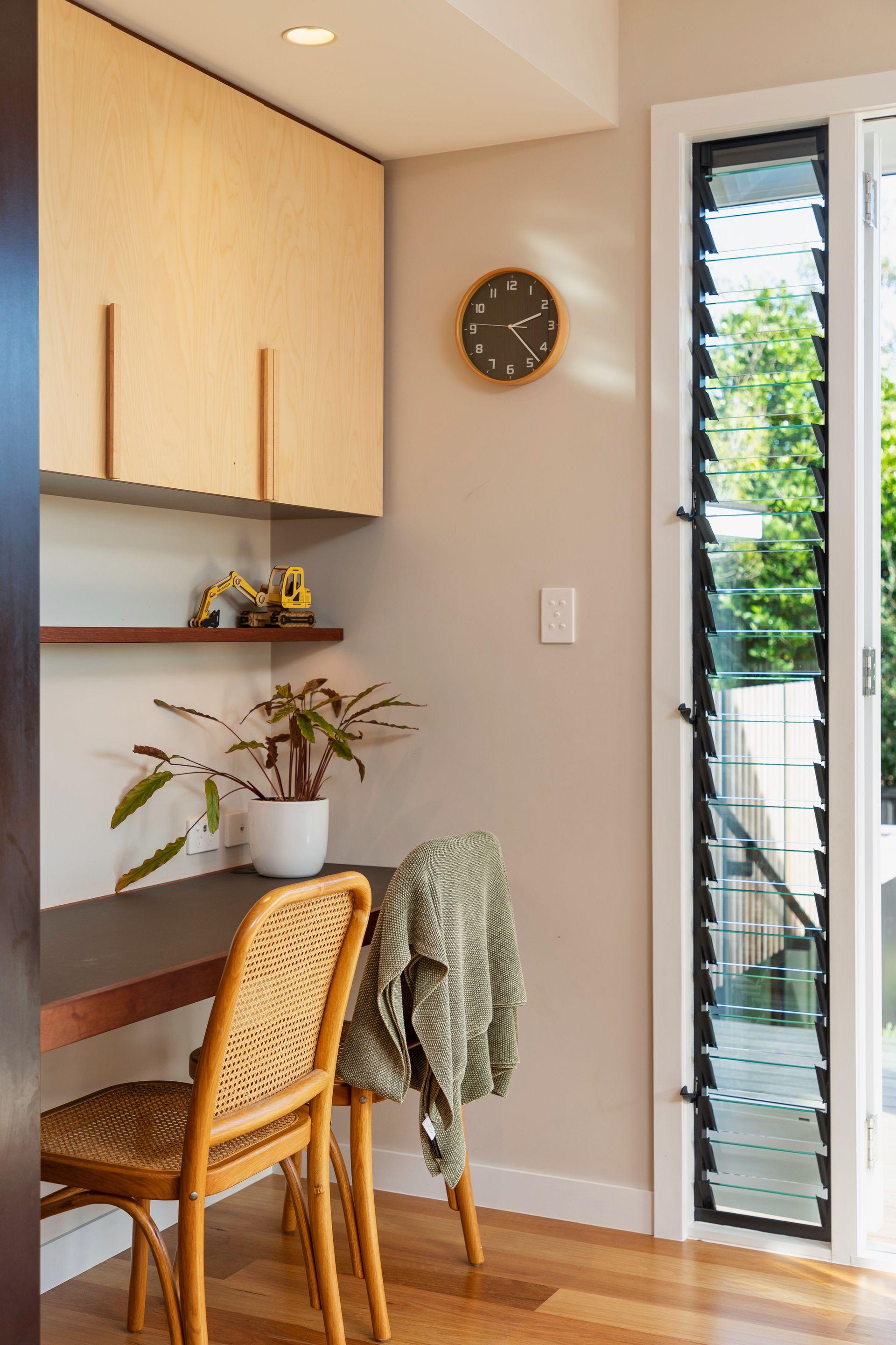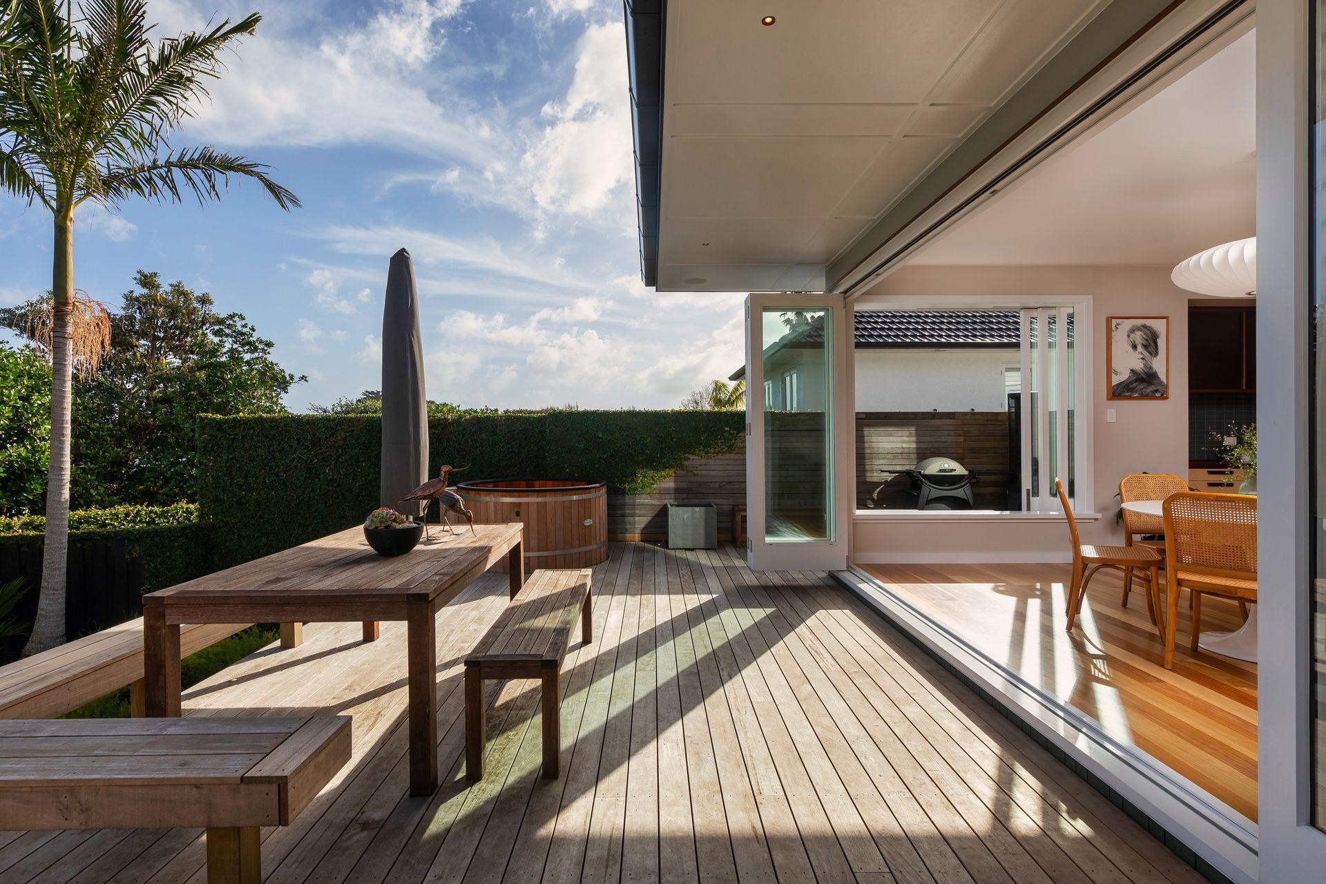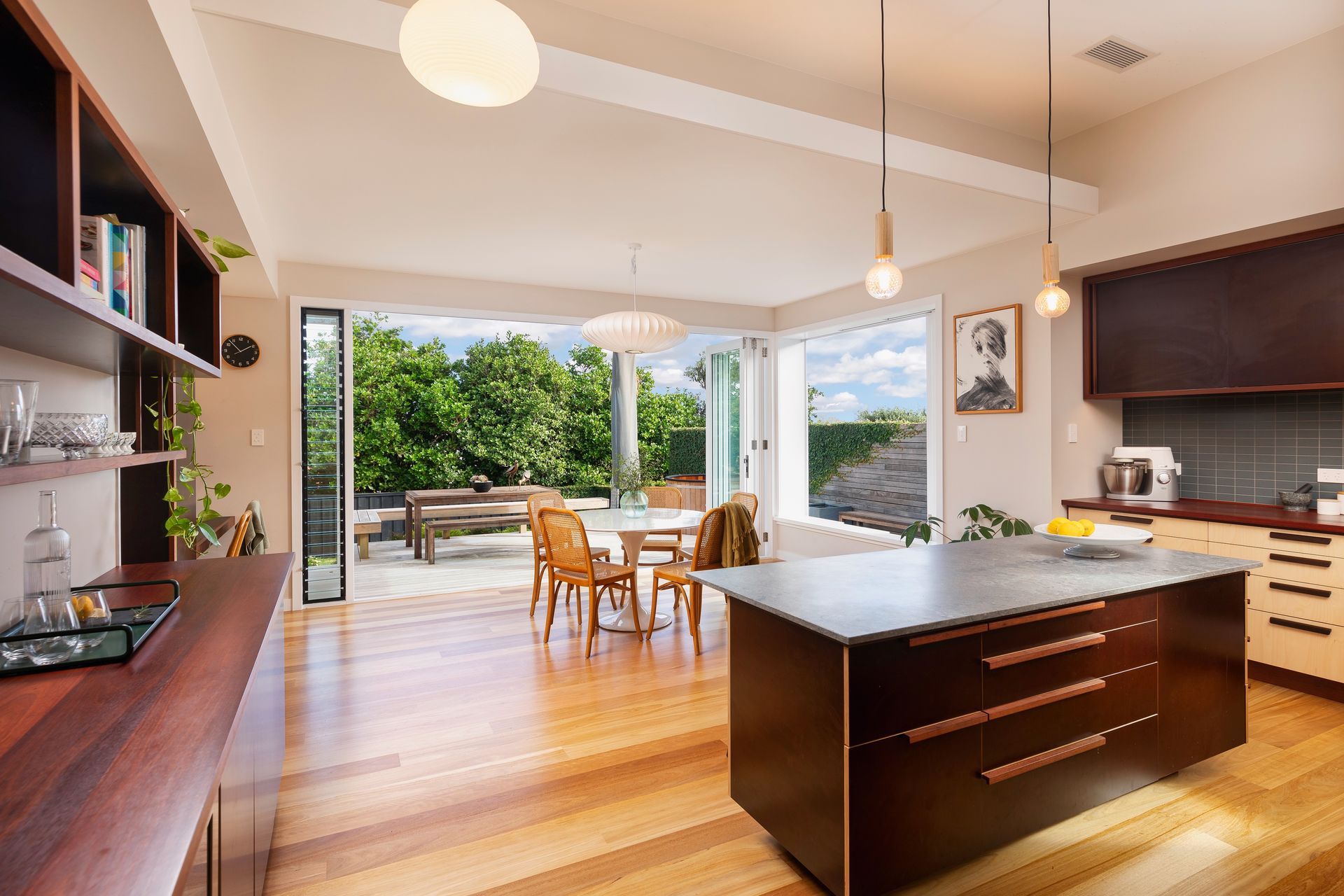 The open-plan layout seamlessly connects the dining and casual living areas, creating a bright, inviting space that extends to a sun-drenched deck overlooking a pristine saltwater pool. Our commitment to quality craftsmanship and innovative design shines through in every detail of this exceptional home.