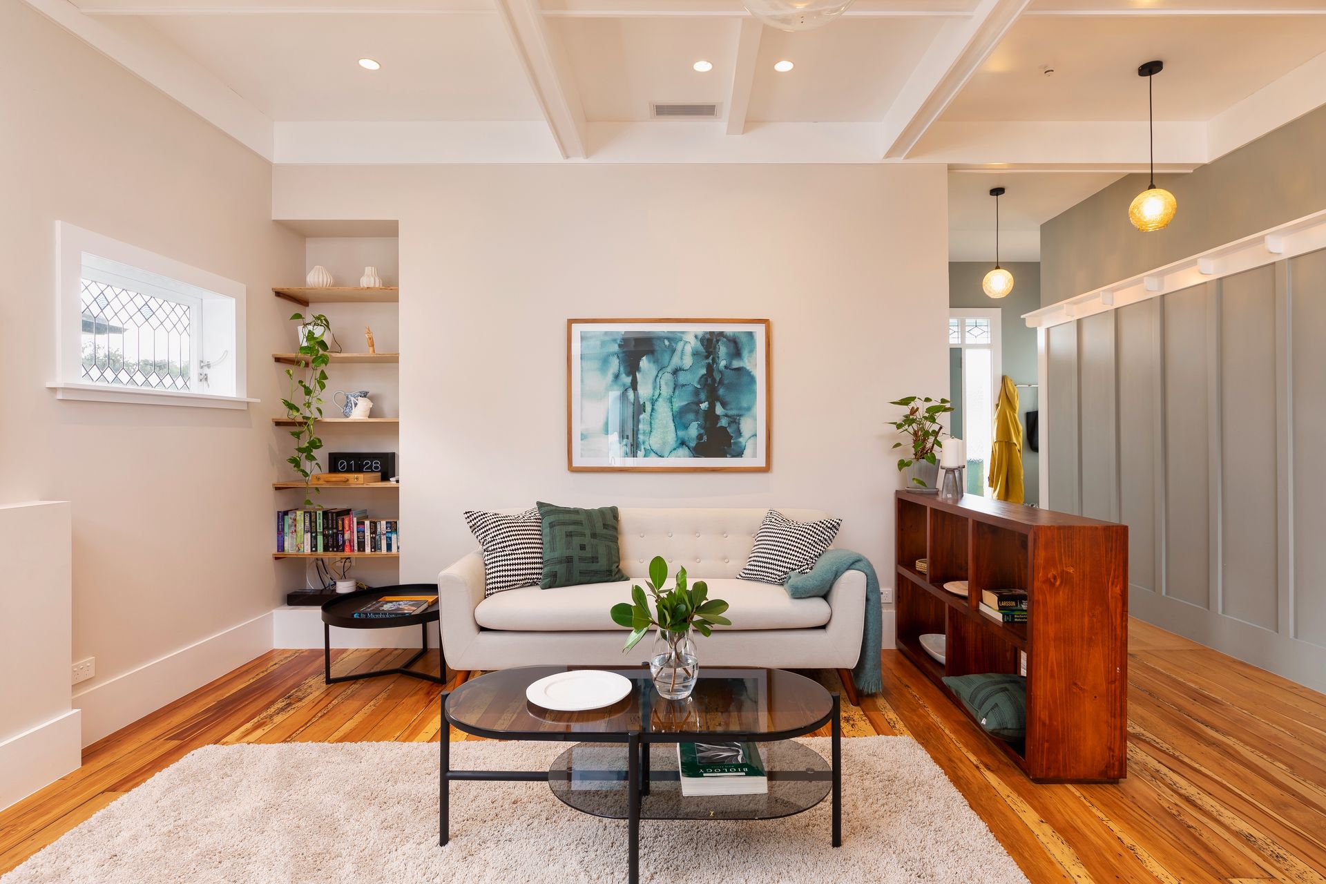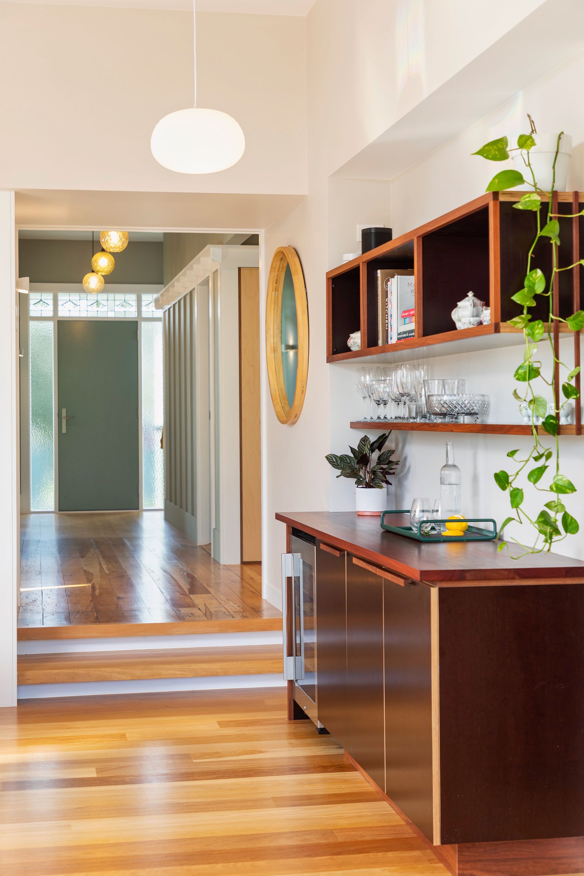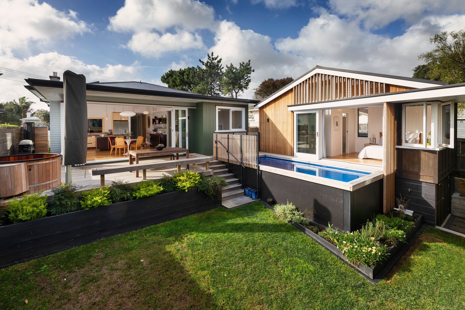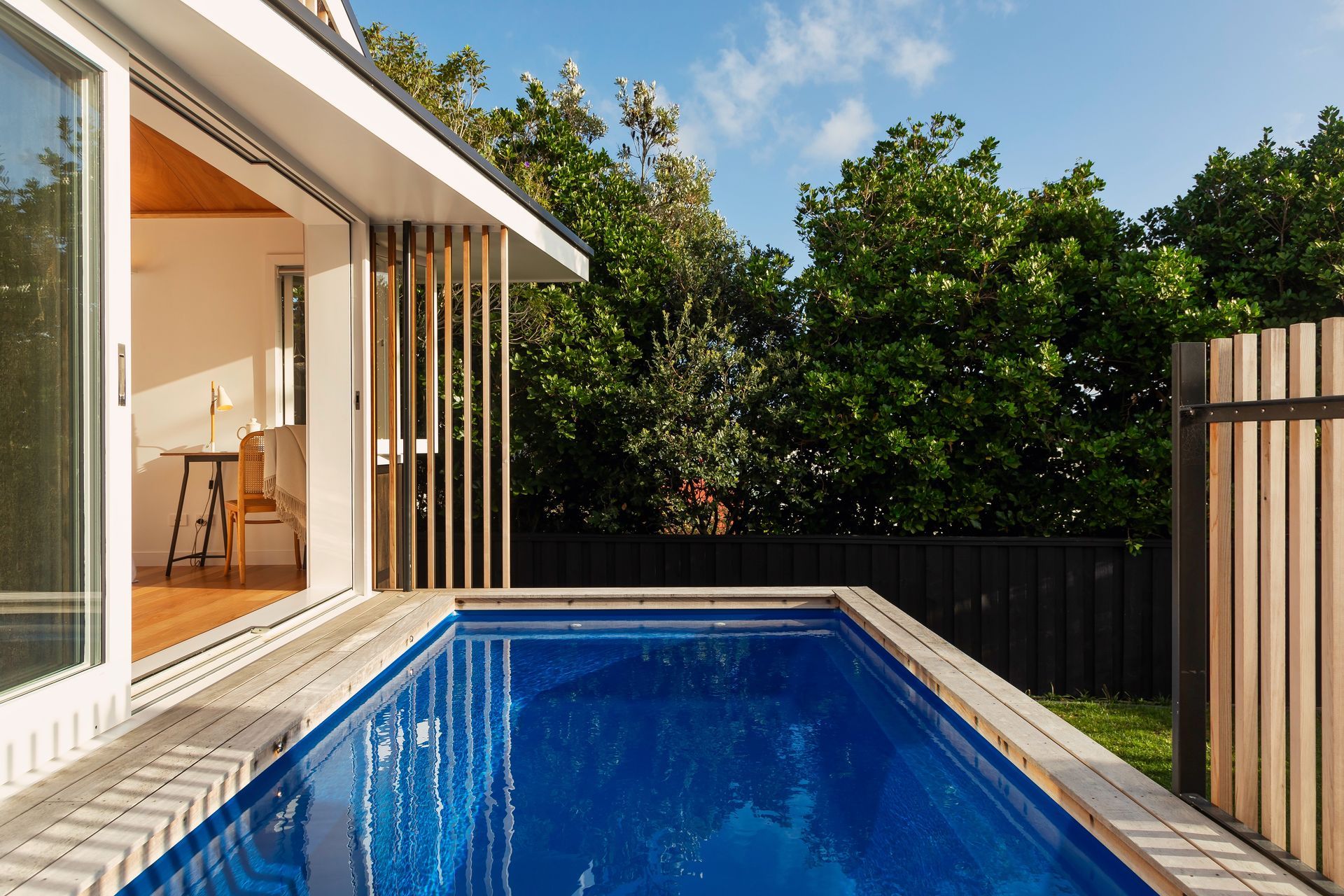 The open-plan layout seamlessly connects the dining and casual living areas, creating a bright, inviting space that extends to a sun-drenched deck overlooking a pristine saltwater pool. Our commitment to quality craftsmanship and innovative design shines through in every detail of this exceptional home.